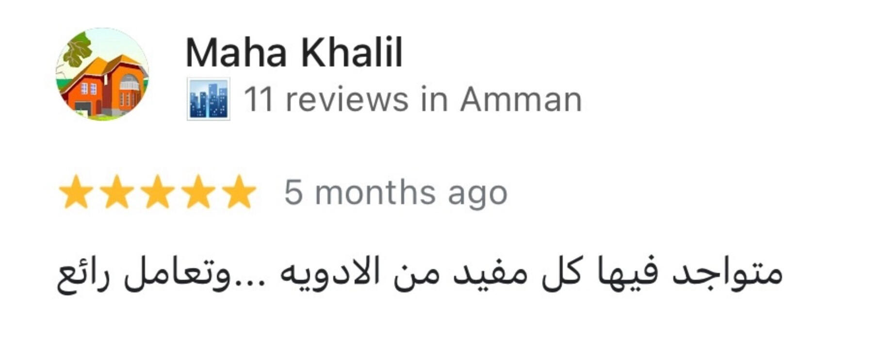 We are a contemporary community pharmacy in Amman, Jordan. Patients' wellness is our top priority; we give honest consultation and will never give you medication you don't need. Our employees are kind, compassionate, and knowledgeable in every field of medicine. We are next-door neighbours to a general and dental clinic, making our location perfect for all-encompassing care. Day and night, we work hard to provide you with all your pharmaceutical necessities - everything from your prescription medications to your diverse skincare needs.